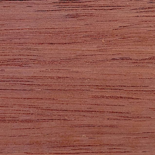 Heartwood is a rich dark brownish red, sometimes marked by short, dark brown radial flecks on the end grain and boat shaped flecks on flat sawn surfaces which enhance its decorative value. The grain is usually straight but often interlocked or wavy. The texture is even but moderately coarse. Also known as Western Australian Jarrah.